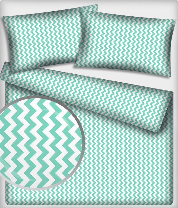 Description Tissu coton au métre couleur blanche zigzag menthol