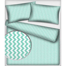 Tissu coton au métre couleur blanche zigzag menthol