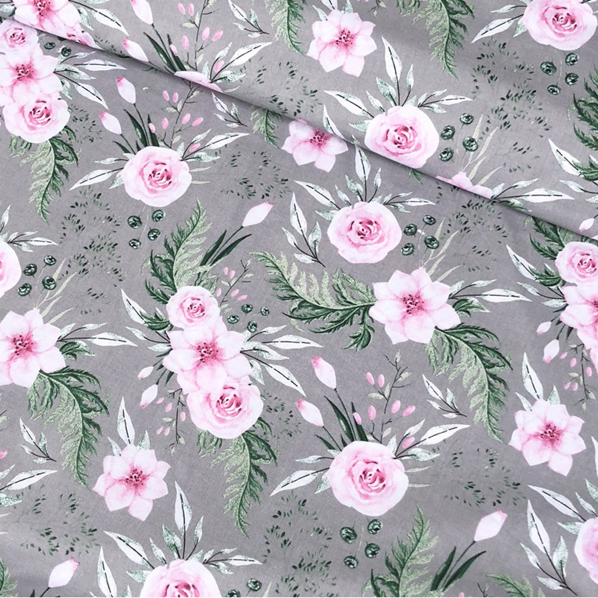 Description Tissu en coton au mètre, 125 g/m², largeur 160 cm, imprimé à jardin gris