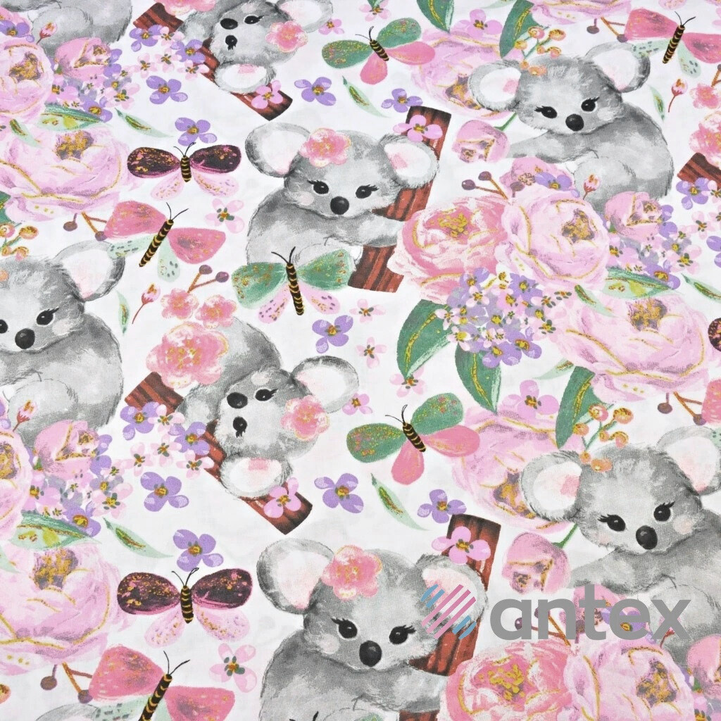 Tissu coton au métre imprimé Koalas couleur blanche