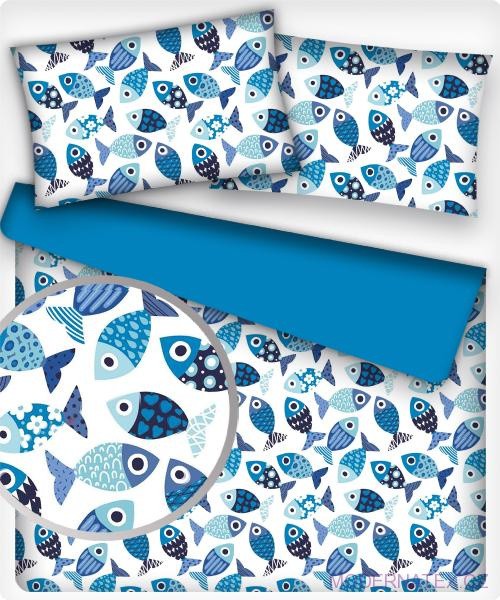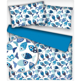 Tissu coton au métre imprimé Poissons bleu sur blanche