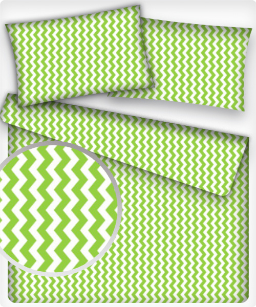Tissu coton au métre couleur blanche zigzag vert 1