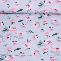 Description Tissu en coton au mètre, 125 g/m², largeur 160 cm, imprimé à fleurs sur fond graphite