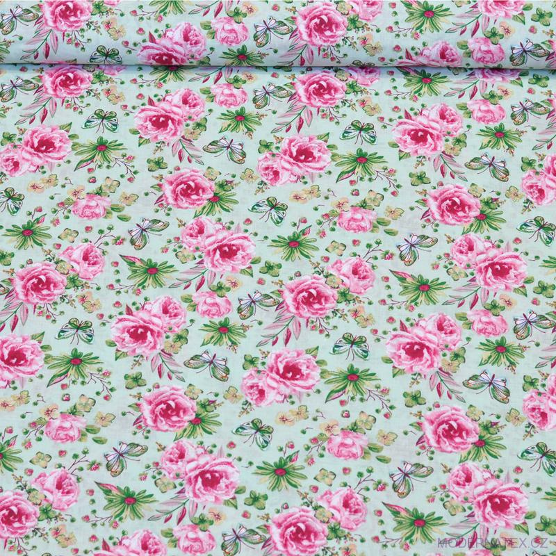 Description Tissu en coton au mètre, 125 g/m², largeur 160 cm, imprimé à fleurs