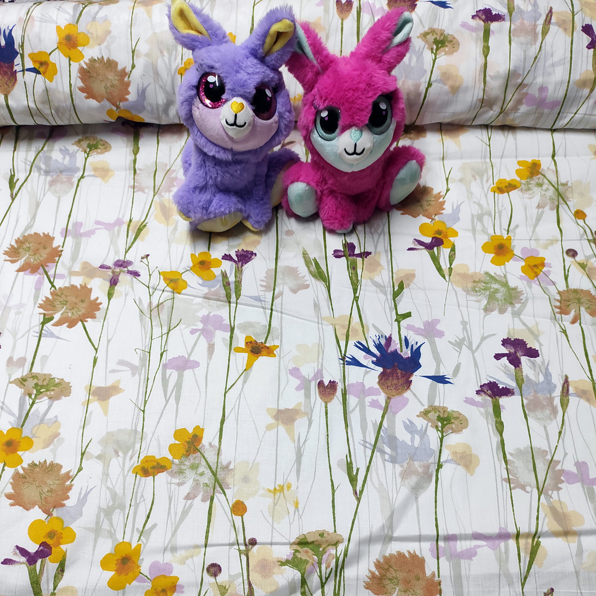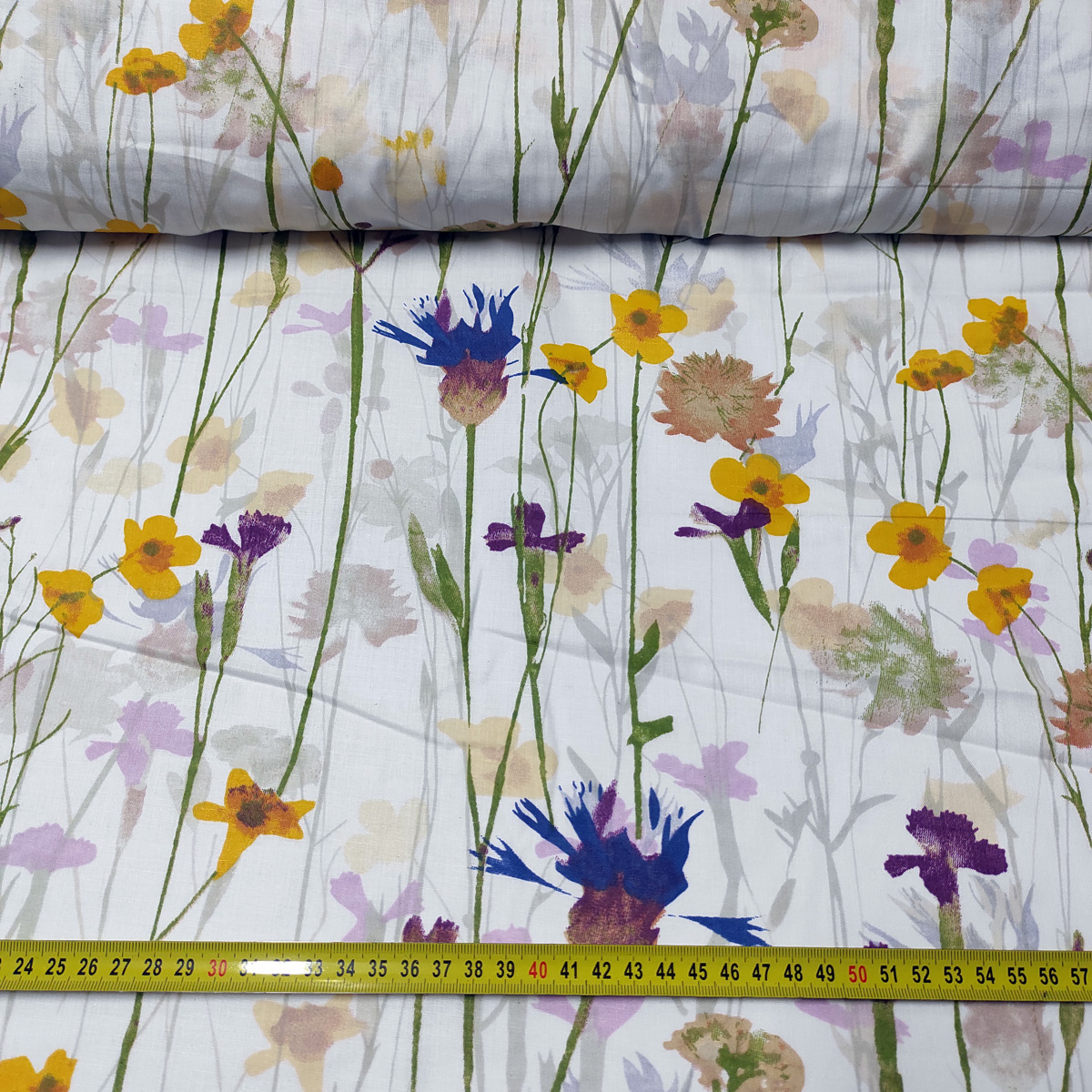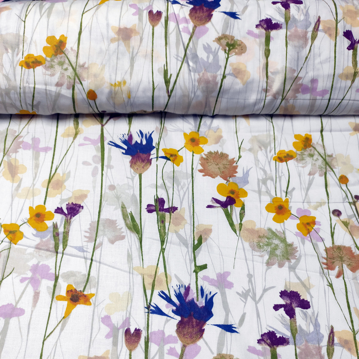 Description Tissu en coton au mètre, 125 g/m², largeur 160 cm, imprimé à fleurs sur fond blanc