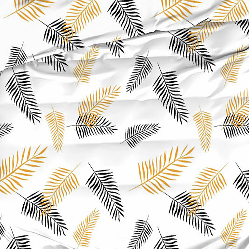Description Tissu en coton au mètre, 125 g/m², largeur 160 cm, imprimé à feuilles sur fond blanc