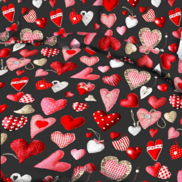 Description Tissu coton au métre imprimé LA SAINT-VALENTIN noir
