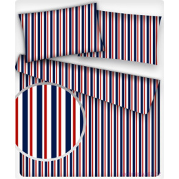 Tissu coton au métre couleur blanche rayé bleu et rouge