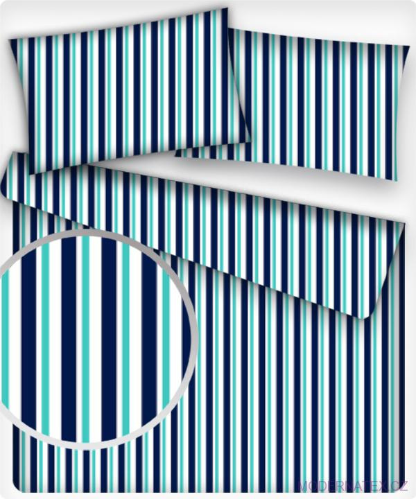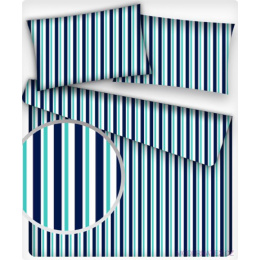 Tissu coton au métre couleur blanche rayé bleu et turquoise