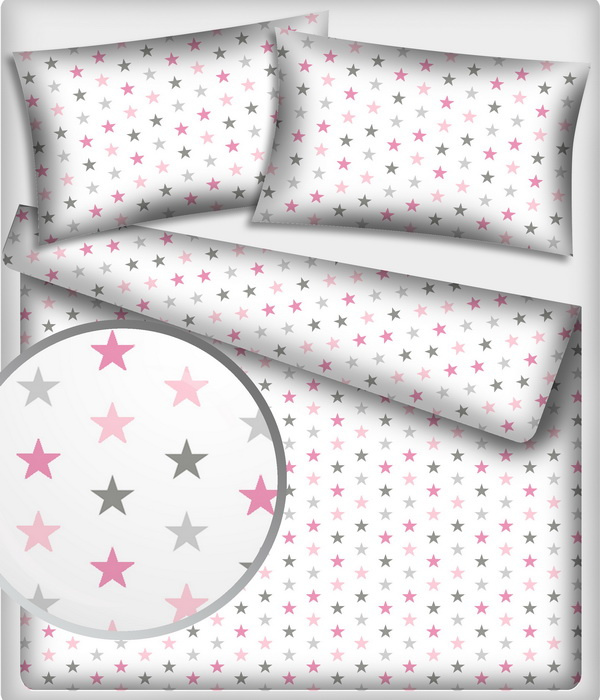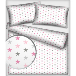Tissu coton au mètre, 125 g/m², largeur 160 cm, imprimé Etoiles multi rose et blanche