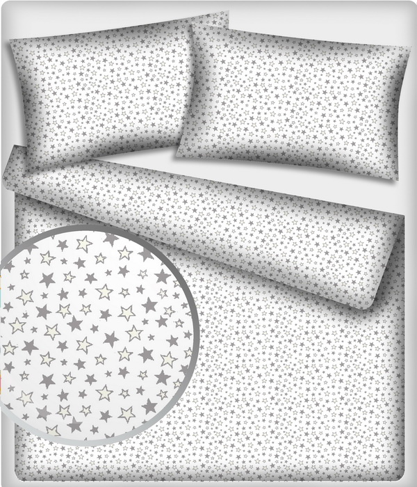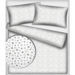 Description Tissu coton au mètre, 125 g/m², largeur 160 cm, imprimé Etoiles griset blanche