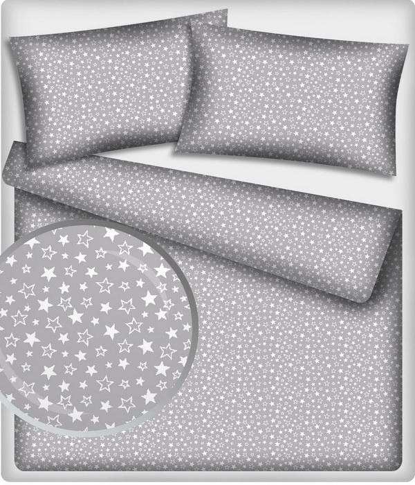 Tissu coton au mètre, 125 g/m², largeur 160 cm, imprimé Etoiles gris
