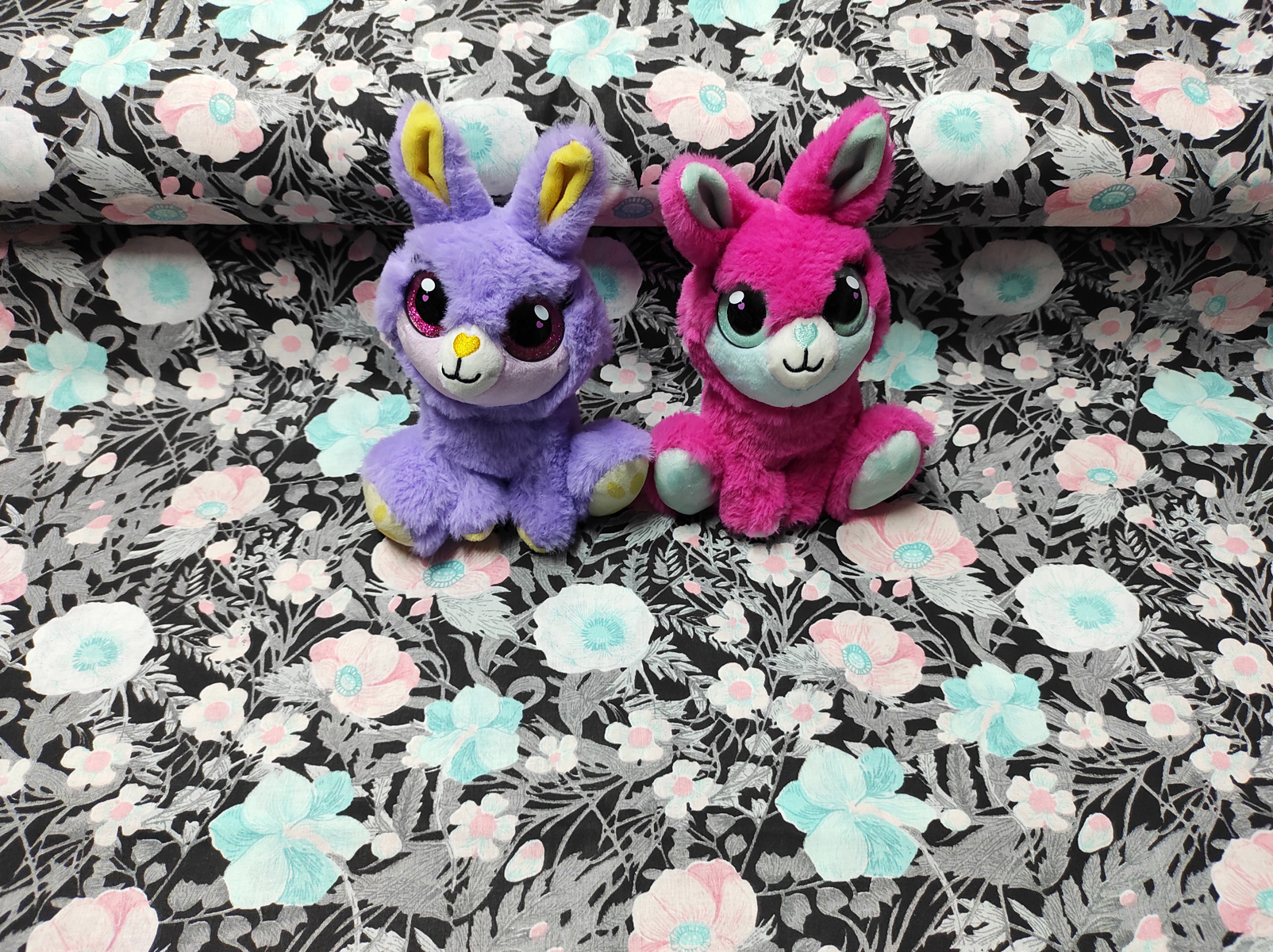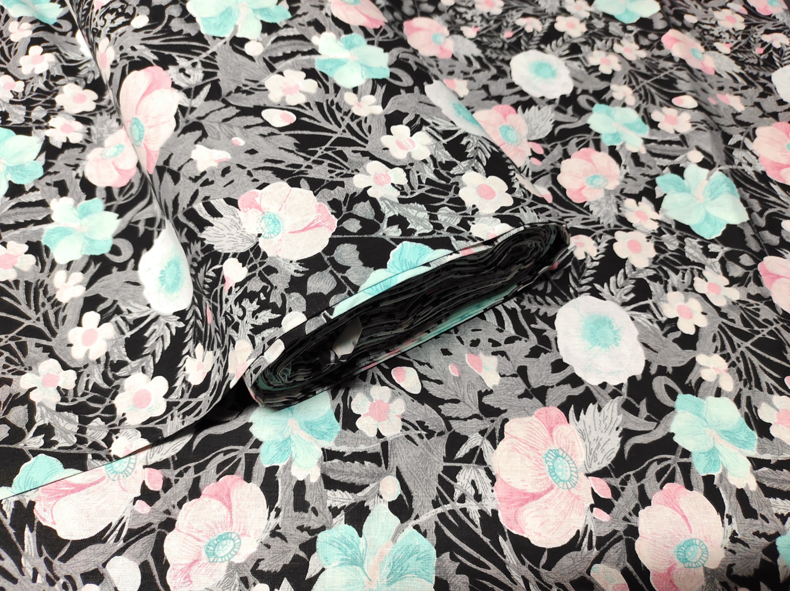 Description Tissu en coton au mètre, 125 g/m², largeur 160 cm, imprimé à fleurs noires