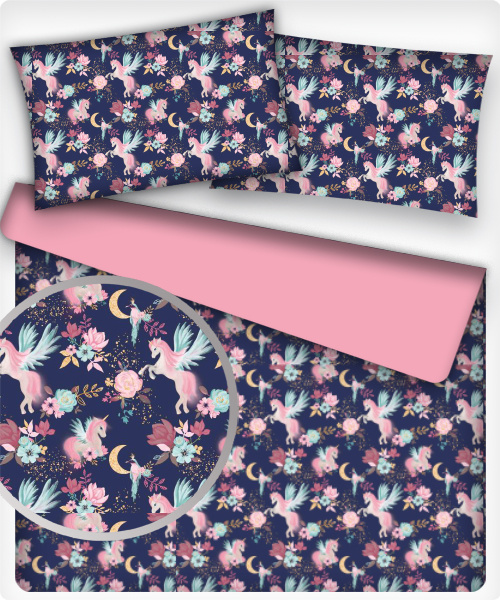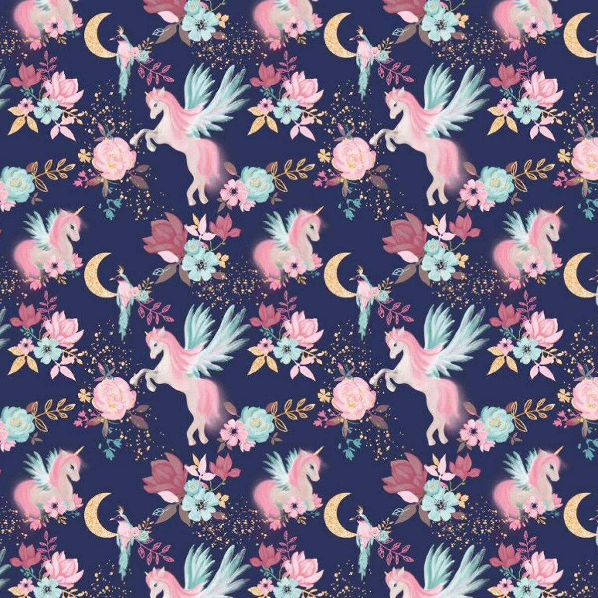 Description Tissu coton au métre imprimé Licorne couleur grenat
