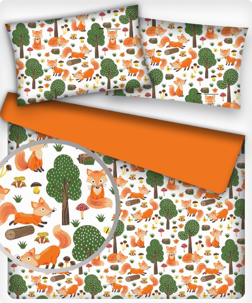 Description Tissu coton au métre imprimé Renards et arbres couleur biege clair