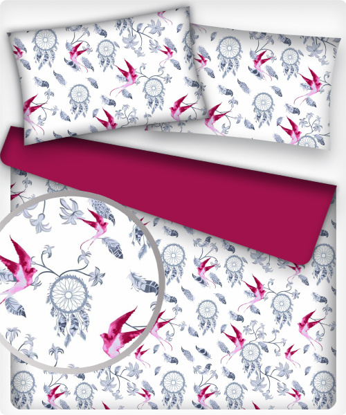 Tissu coton au métre imprimé Attrapeur de rêves amarante