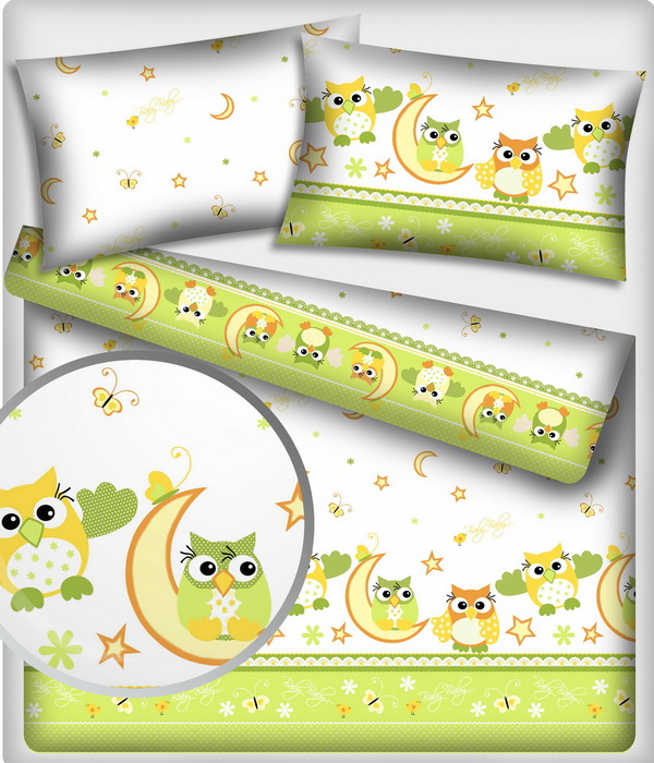 Description Tissu coton au métre imprimé Hiboux couleur vert