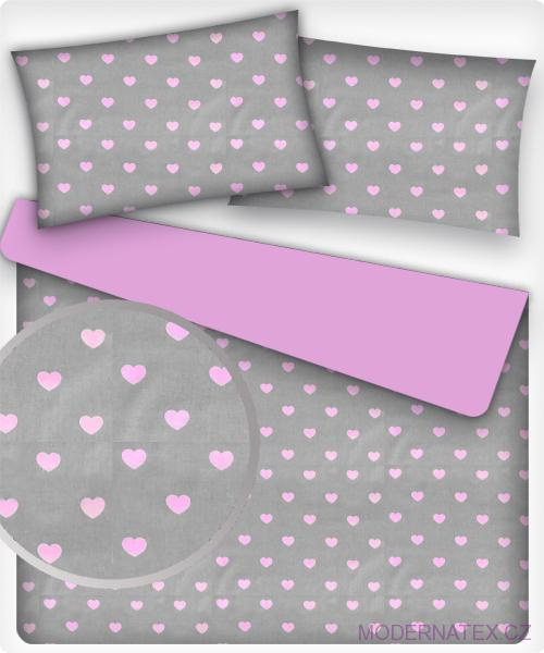 Tissu coton au métre couleur gris coeurs rose 808
