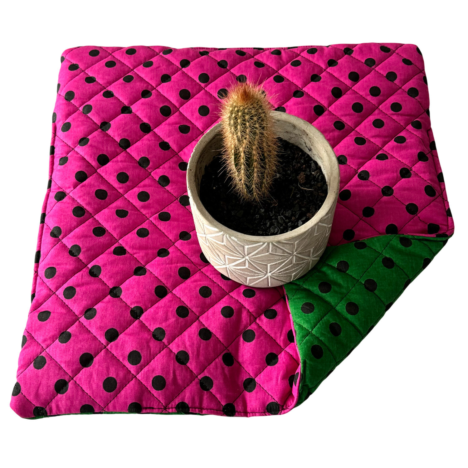 Coussin d'assise 40x40x2cm Pois Noir sur Amarante et Vert