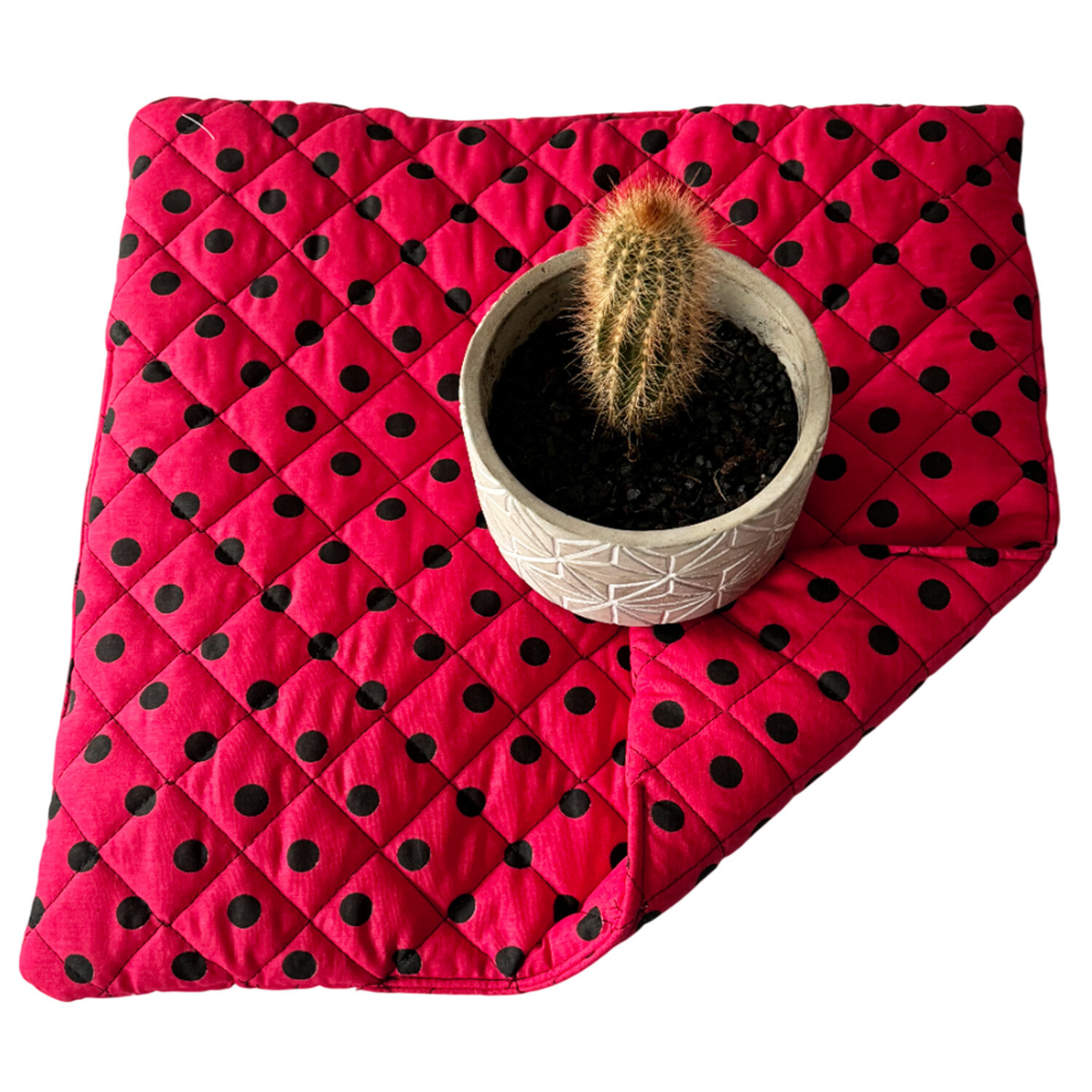 Ce coussin se distingue par son motif à pois noir sur un fond rouge, une combinaison de couleurs qui évoque à la fois la modernité et le charme classique. Le design à pois est intemporel et s'intègre facilement dans divers styles de décoration, qu'il s'agisse d'un intérieur contemporain, vintage ou éclectique.