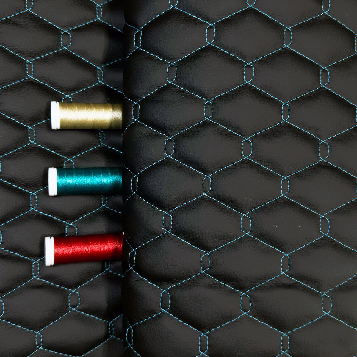 Description du produit. Ce similicuir matelassé GEO, à base de polyuréthane (PU) sur un support 100 % polyester, se distingue par son aspect structuré et sa robustesse. Grâce à son design matelassé en losanges (5 x 3 cm), il offre non seulement un effet esthétique premium, mais également une meilleure résistance à l’usure. Ce matériau est idéal pour la confection de textiles techniques et décoratifs.