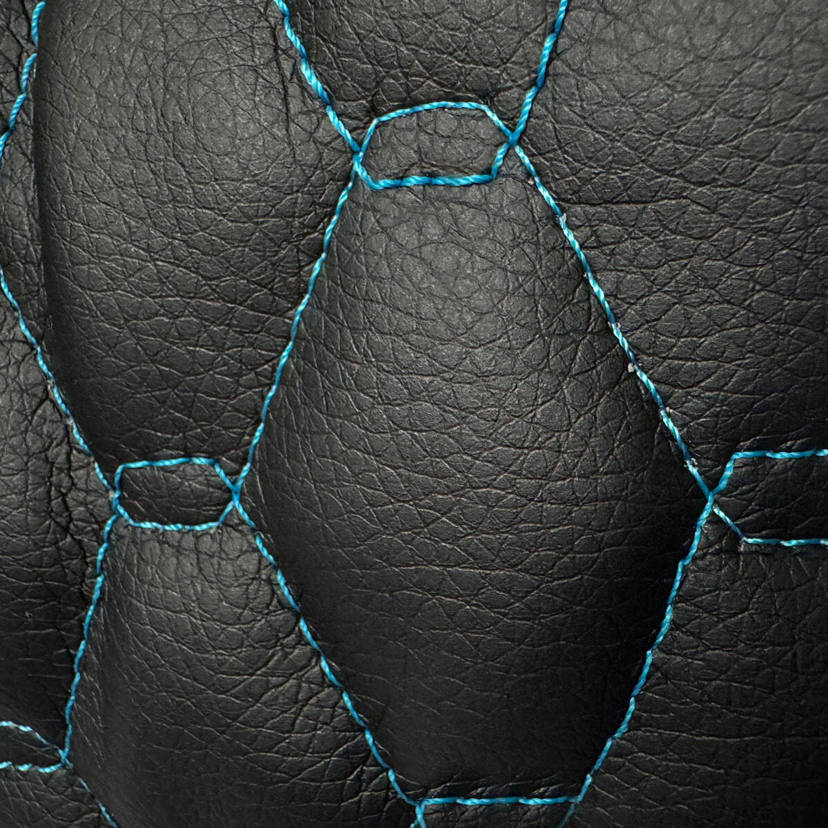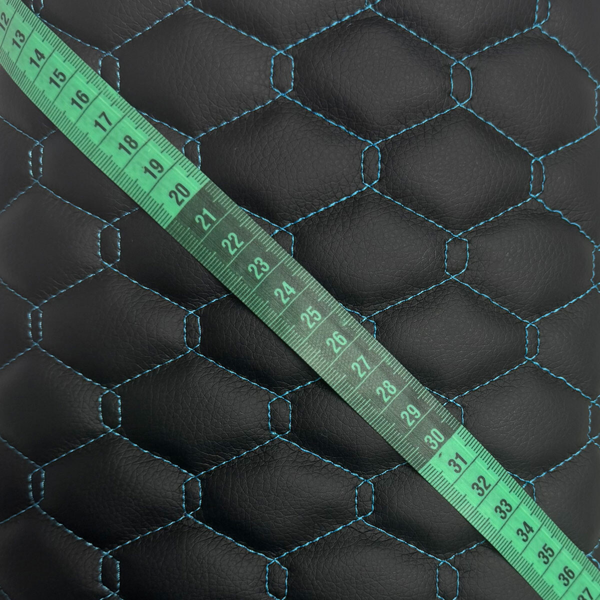Description Simili cuir matelassé GEO, 540 g/m², largeur 145 cm, noir avec fil turquoise