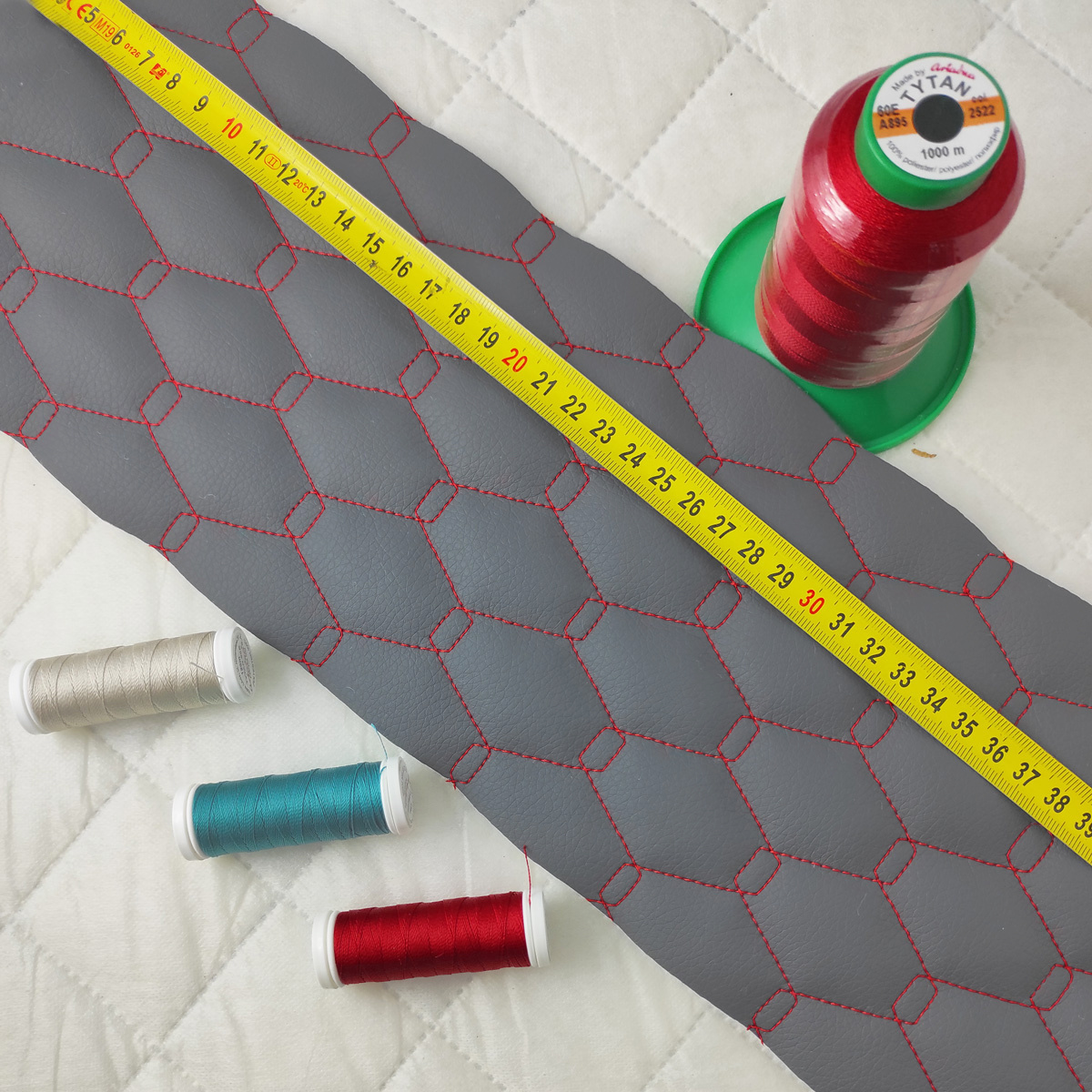 Description du produit. Ce similicuir matelassé GEO, à base de polyuréthane (PU) sur un support 100 % polyester, se distingue par son aspect structuré et sa robustesse. Grâce à son design matelassé en losanges (5 x 3 cm), il offre non seulement un effet esthétique premium, mais également une meilleure résistance à l’usure. Ce matériau est idéal pour la confection de textiles techniques et décoratifs.