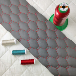 Description Simili cuir matelassé GEO, 540 g/m², largeur 145 cm, gris avec fil rouge