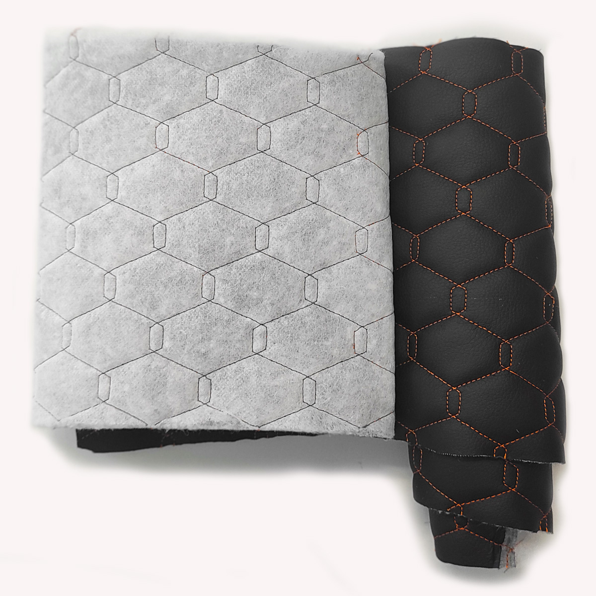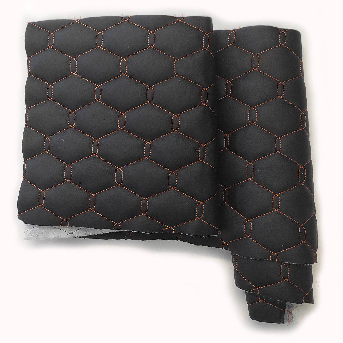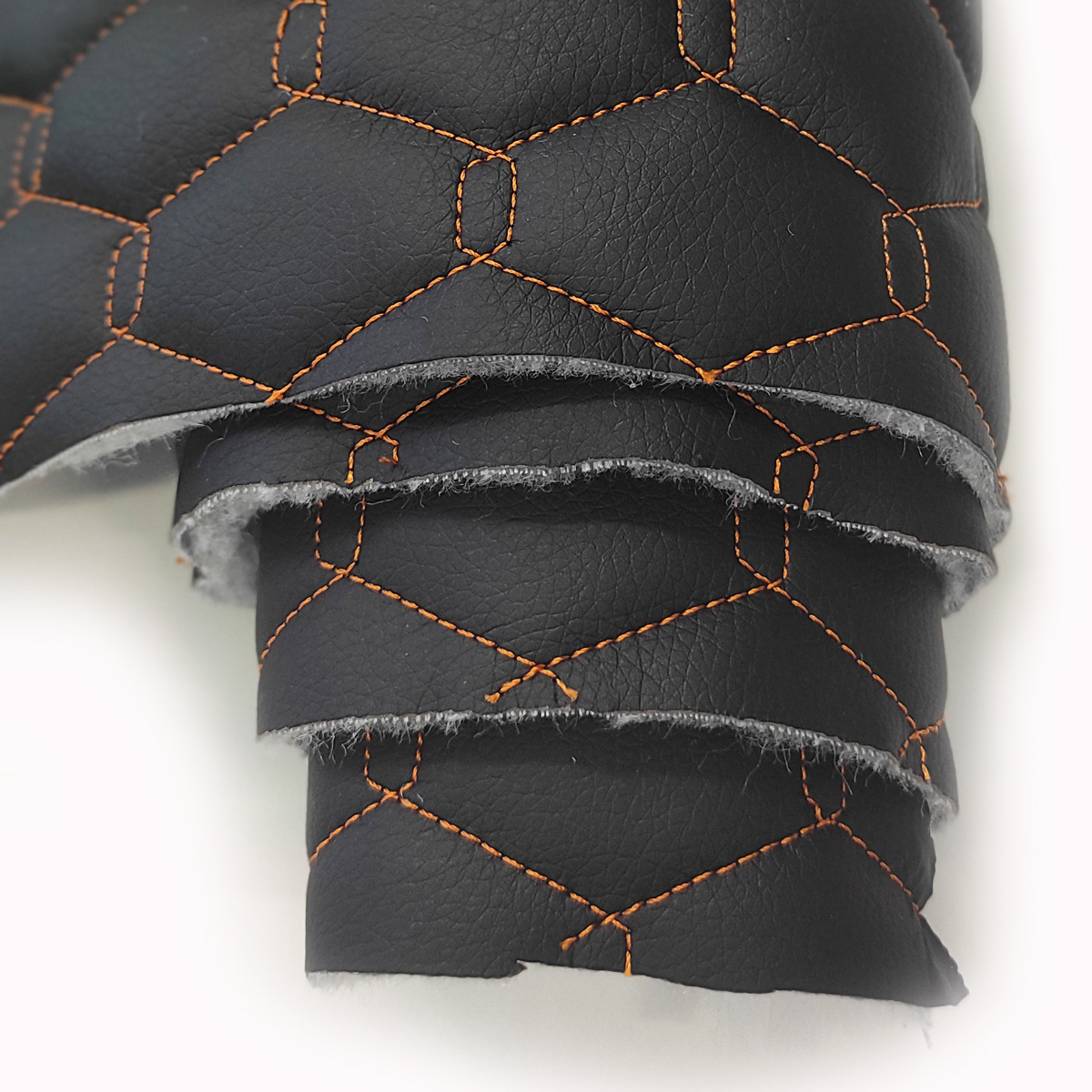 Description Simili cuir matelassé GEO, 540 g/m², largeur 145 cm, noir avec fil orange