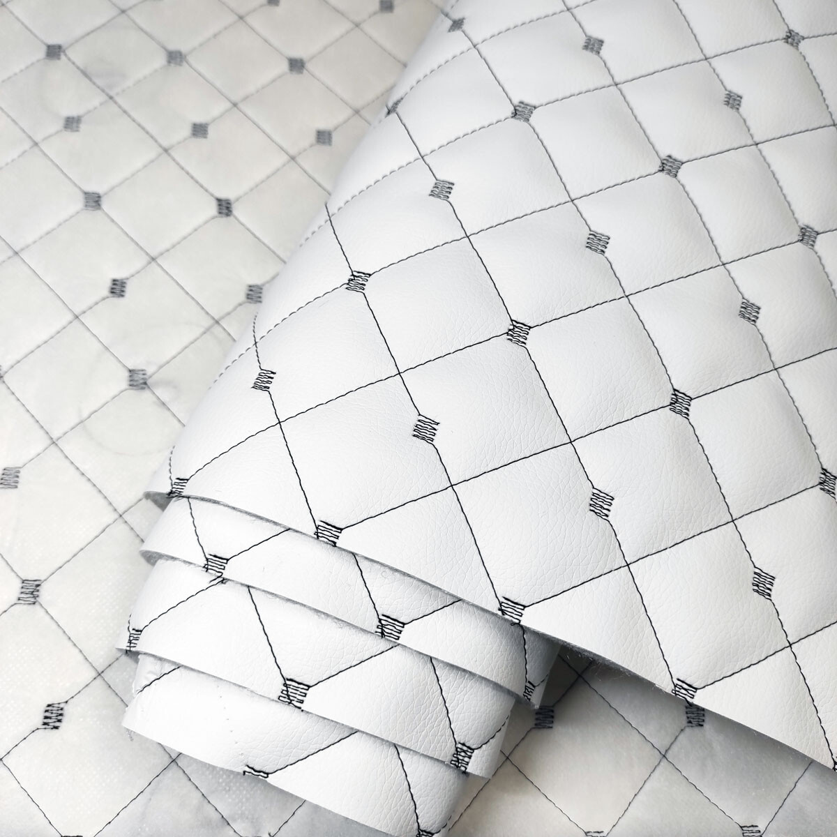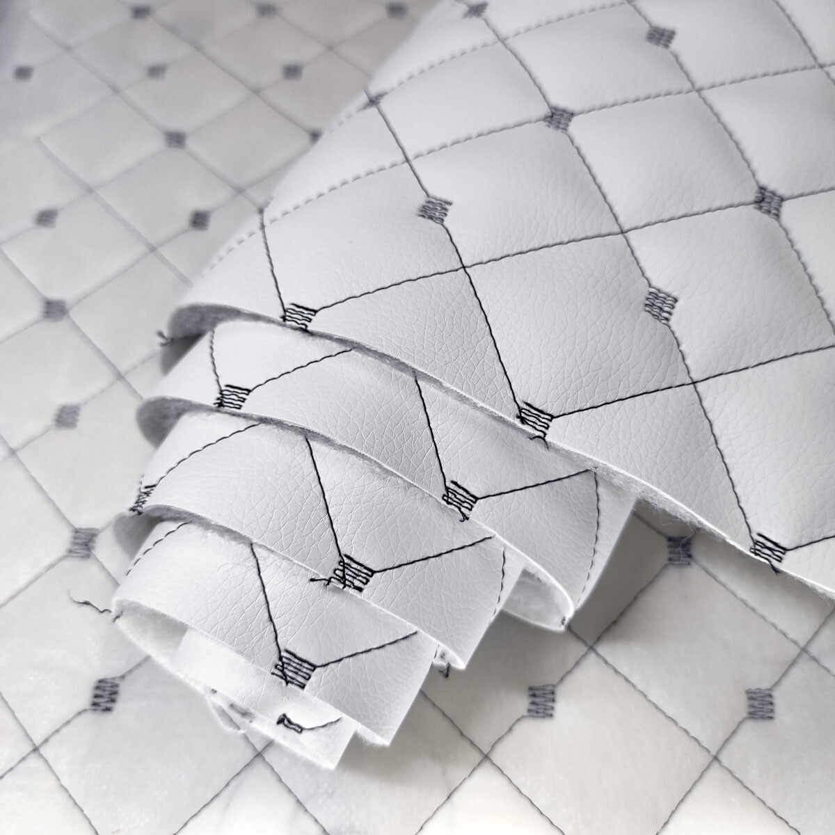 Description du produit. Ce similicuir matelassé 3x3, à base de polyuréthane (PU) sur un support 100 % polyester, se distingue par son aspect structuré et sa robustesse. Grâce à son design matelassé en losanges (3 x 3 cm), il offre non seulement un effet esthétique premium, mais également une meilleure résistance à l’usure. Ce matériau est idéal pour la confection de textiles techniques et décoratifs.