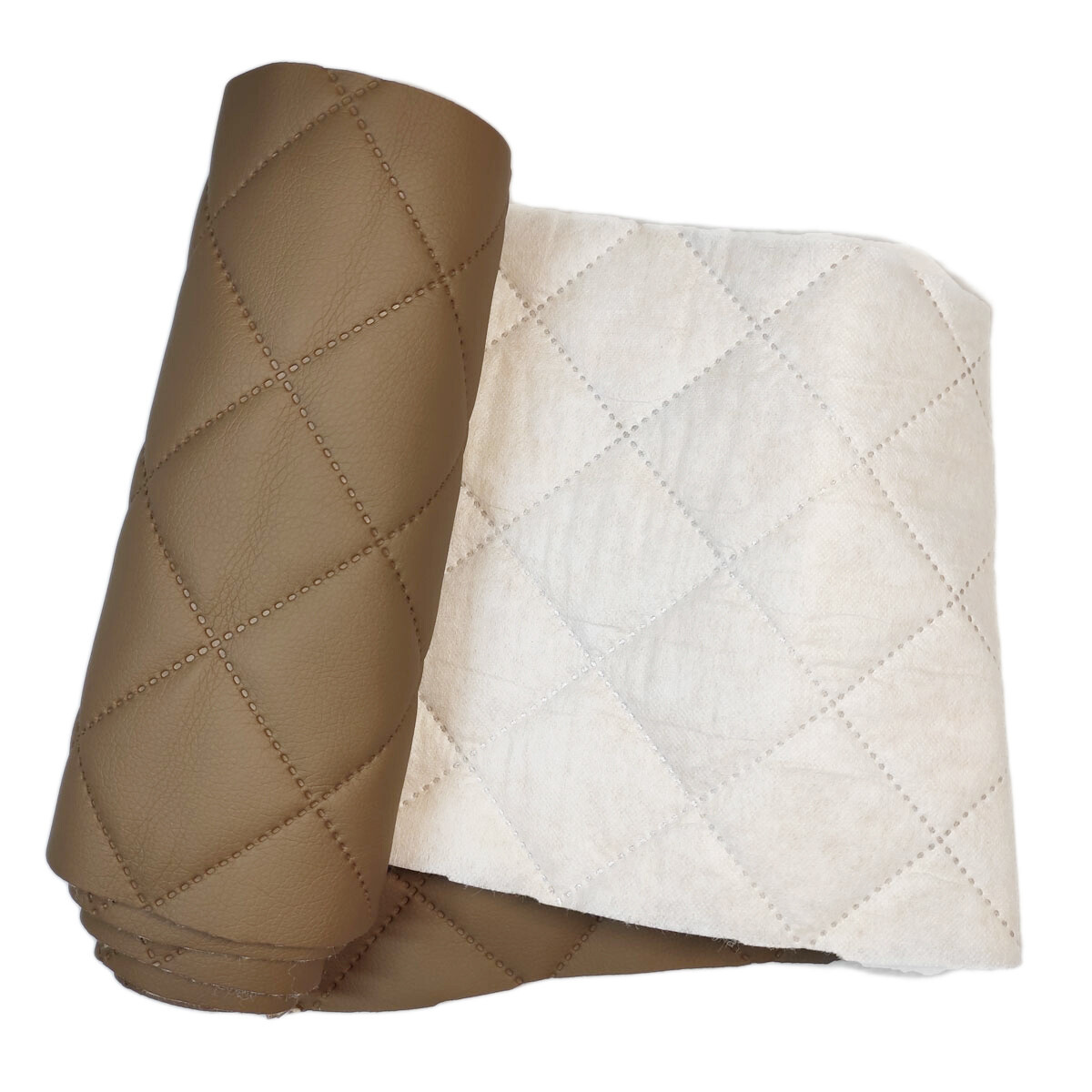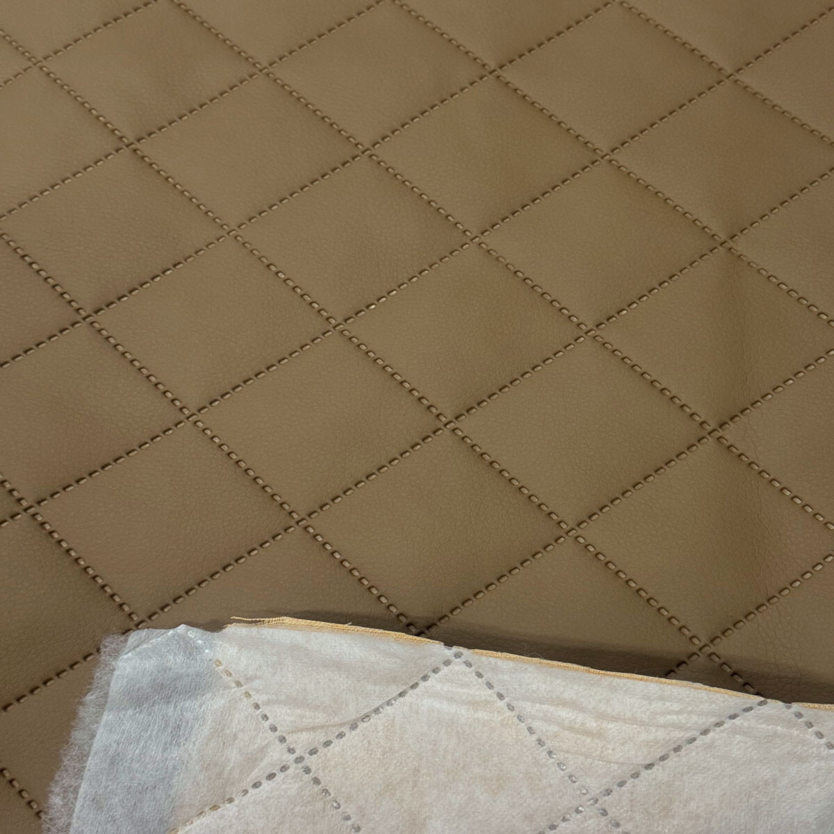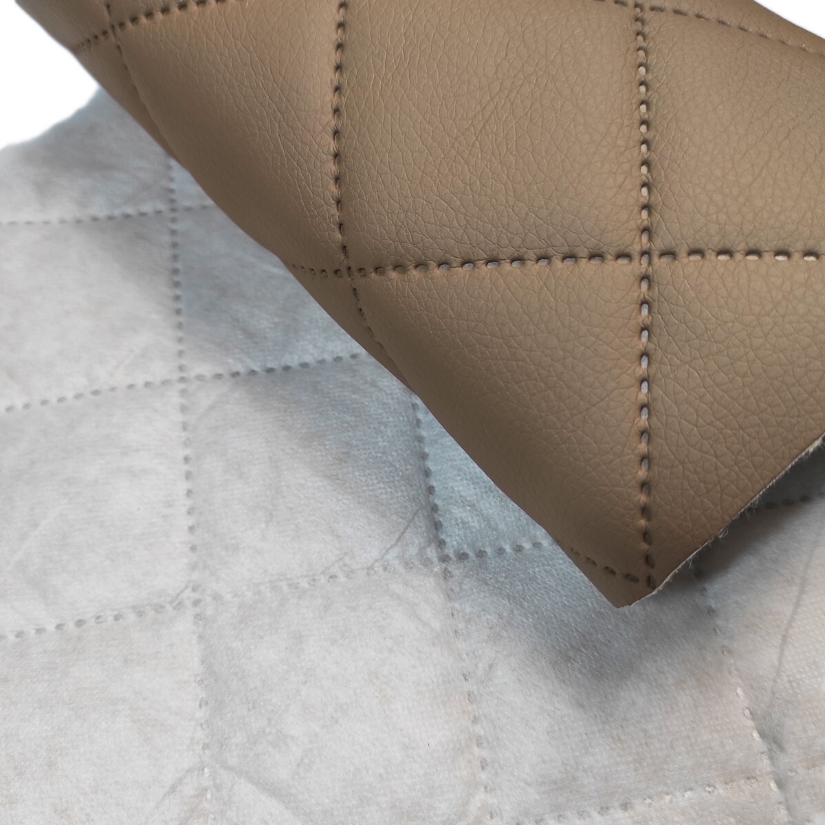 Description du produit. Ce similicuir matelassé 5x5, à base de polyuréthane (PU) sur un support 100 % polyester, se distingue par son aspect structuré et sa robustesse. Grâce à son design matelassé en losanges (5 x 5 cm), il offre non seulement un effet esthétique premium, mais également une meilleure résistance à l’usure. Ce matériau est idéal pour la confection de textiles techniques et décoratifs.