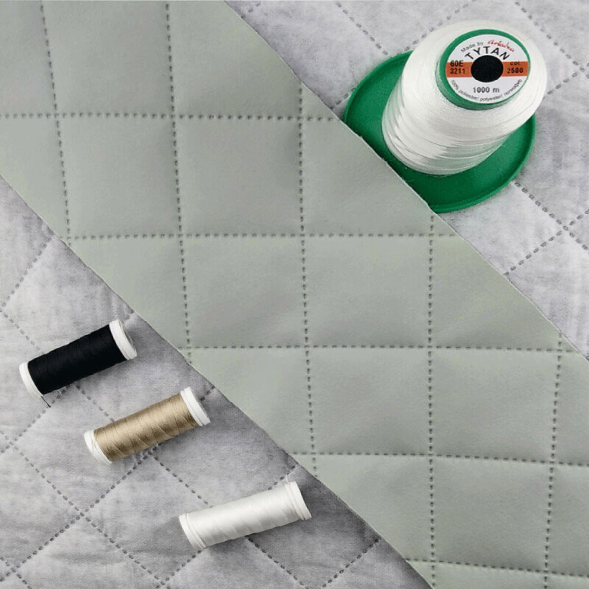 Le motif est obtenu par piquage direct à l’aiguille, à travers les différentes couches du tissu. Ce procédé crée une texture visible et régulière. D’autres motifs ou configurations sont disponibles sur demande – contactez-nous pour des réalisations sur mesure.