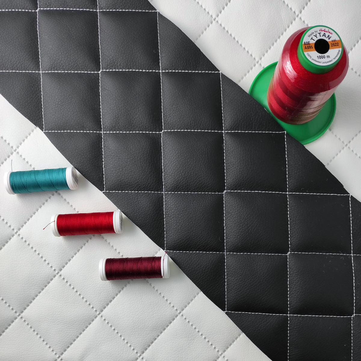Description du produit. Ce similicuir matelassé 5x5, à base de polyuréthane (PU) sur un support 100 % polyester, se distingue par son aspect structuré et sa robustesse. Grâce à son design matelassé en losanges (5 x 5 cm), il offre non seulement un effet esthétique premium, mais également une meilleure résistance à l’usure. Ce matériau est idéal pour la confection de textiles techniques et décoratifs.