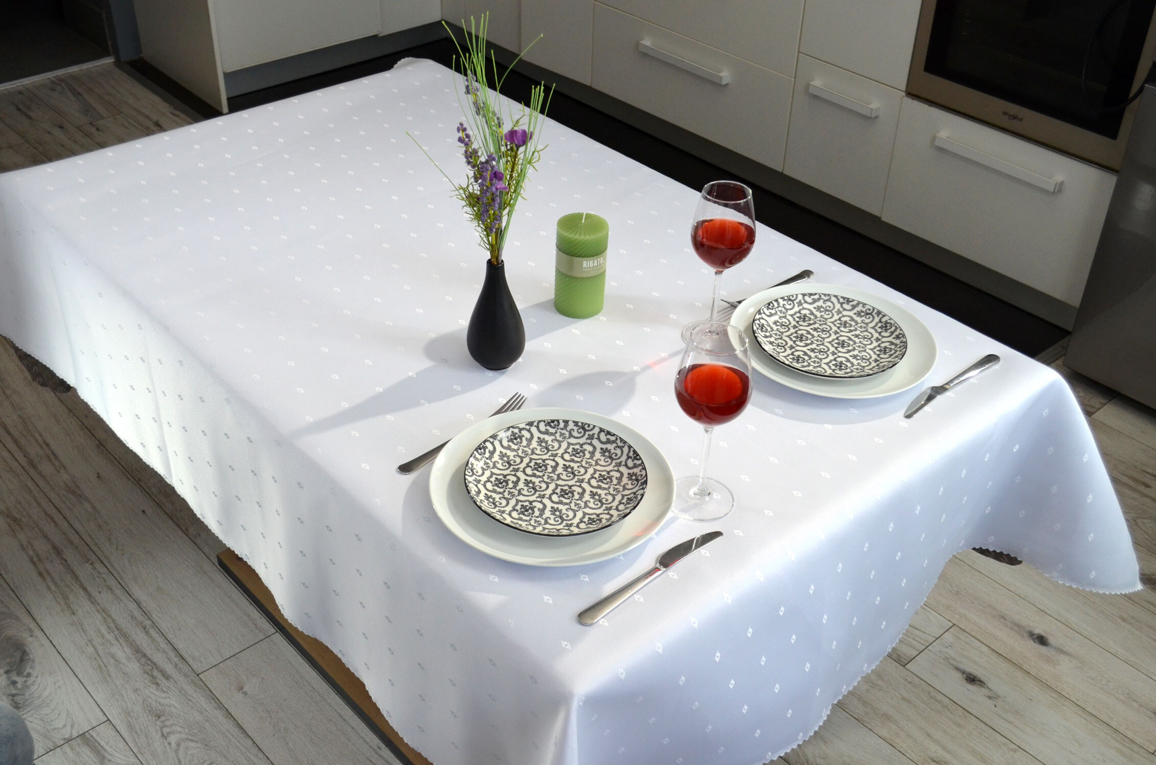 Nappe blanche déperlante Rhombe, résistante aux taches