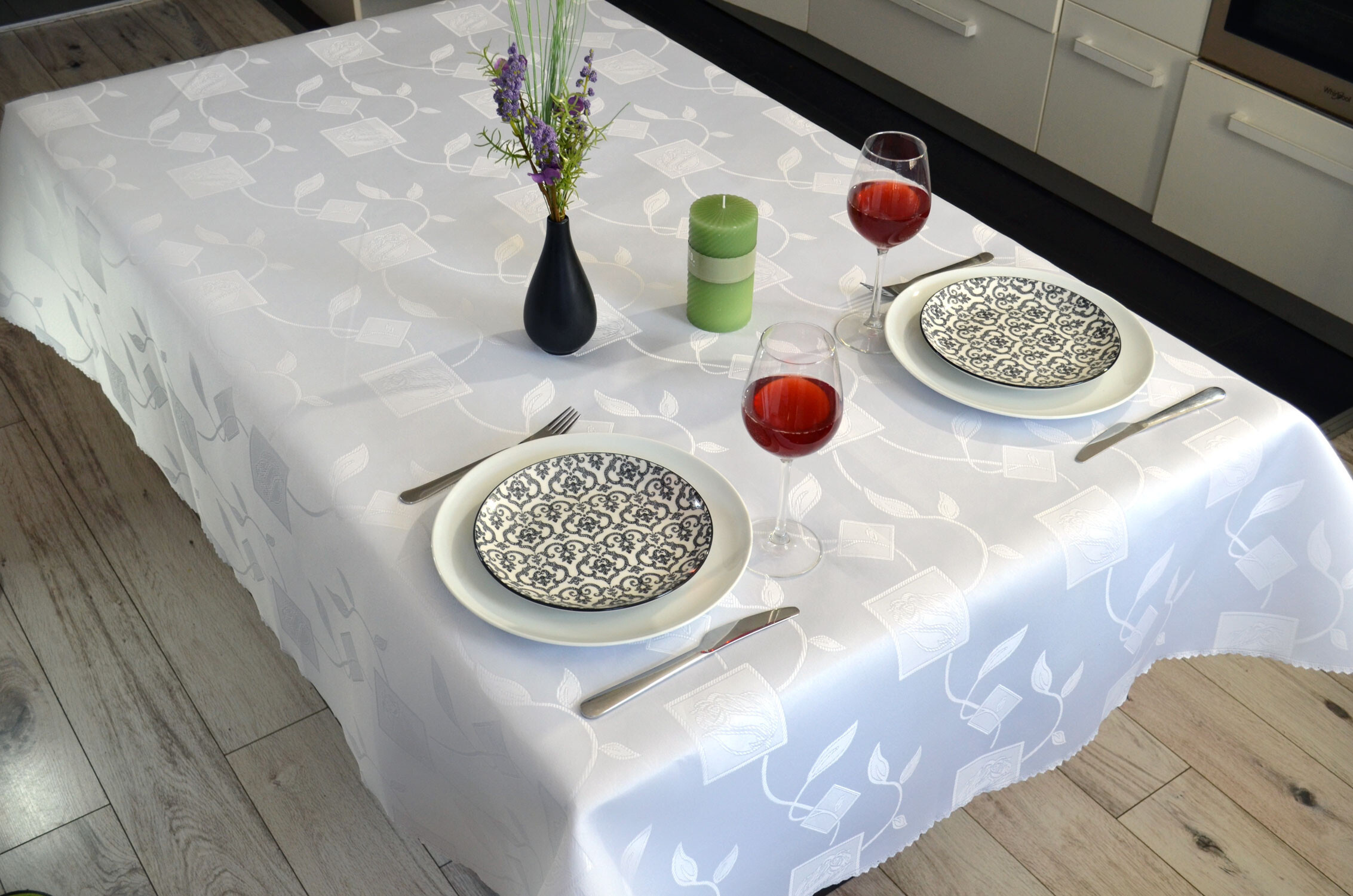 Nappe blanche déperlante, résistante aux taches 110x160cm, 140x180 cm, 140x220 cm