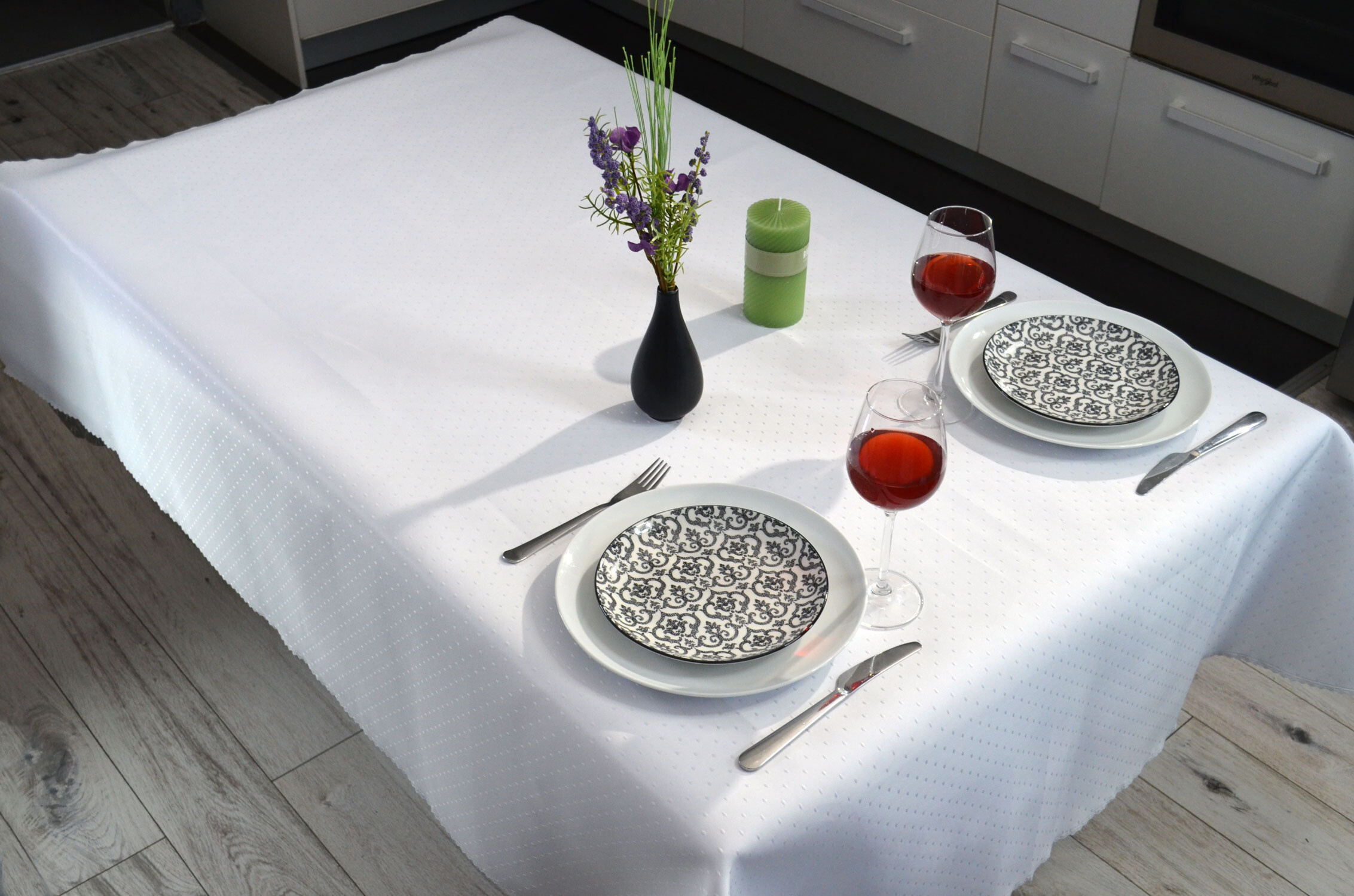 Nappe blanche déperlante, résistante aux taches 110x160cm, 140x180 cm, 140x220 cm