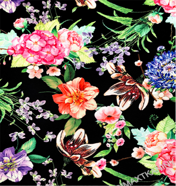 • Tissu avec un dessin imprimé couleur luxueux