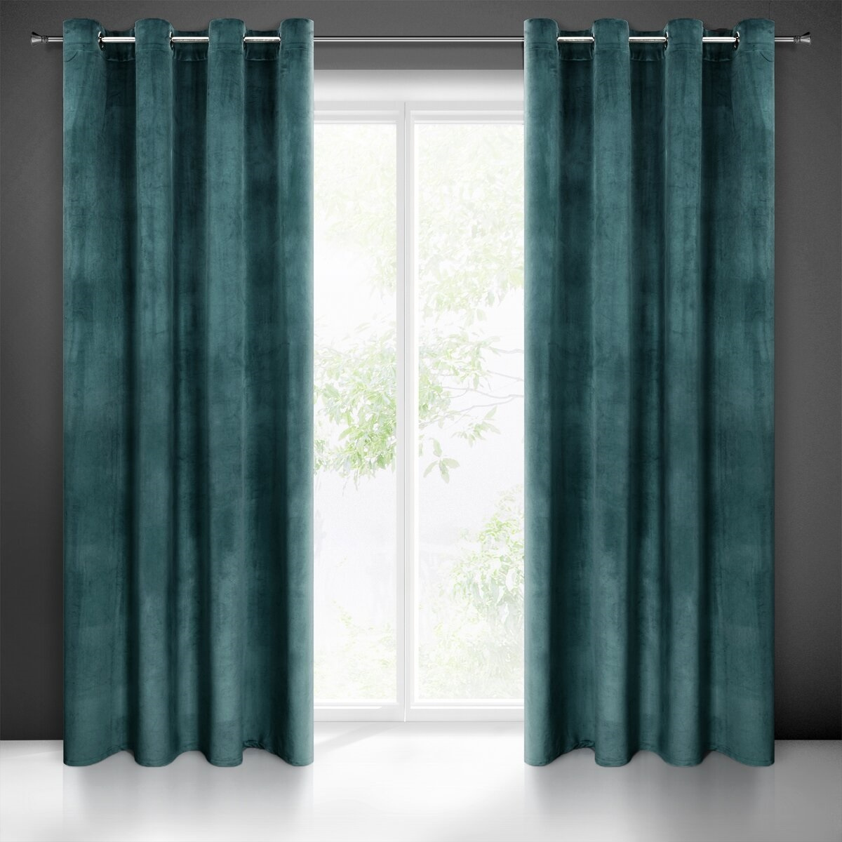 Description Rideau velours avec œillets couleur petrole 140x250 cm