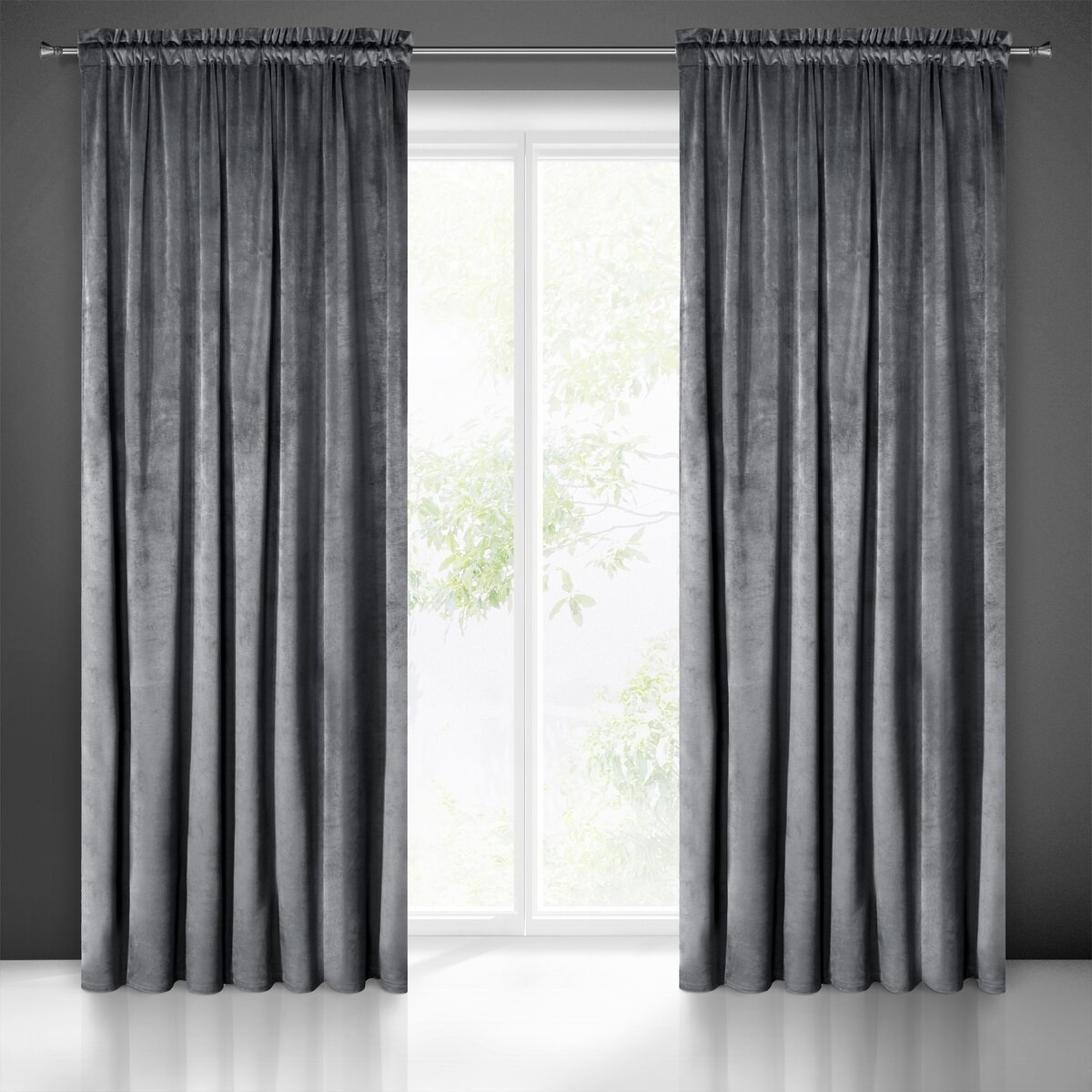 Rideau velours sur le ruban fronceur couleur graphite 140x270 cm