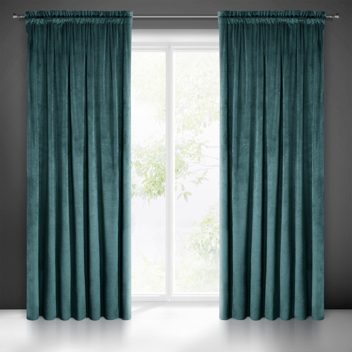 Description Rideau velours sur le ruban fronceur couleur petrole 140x270 cm
