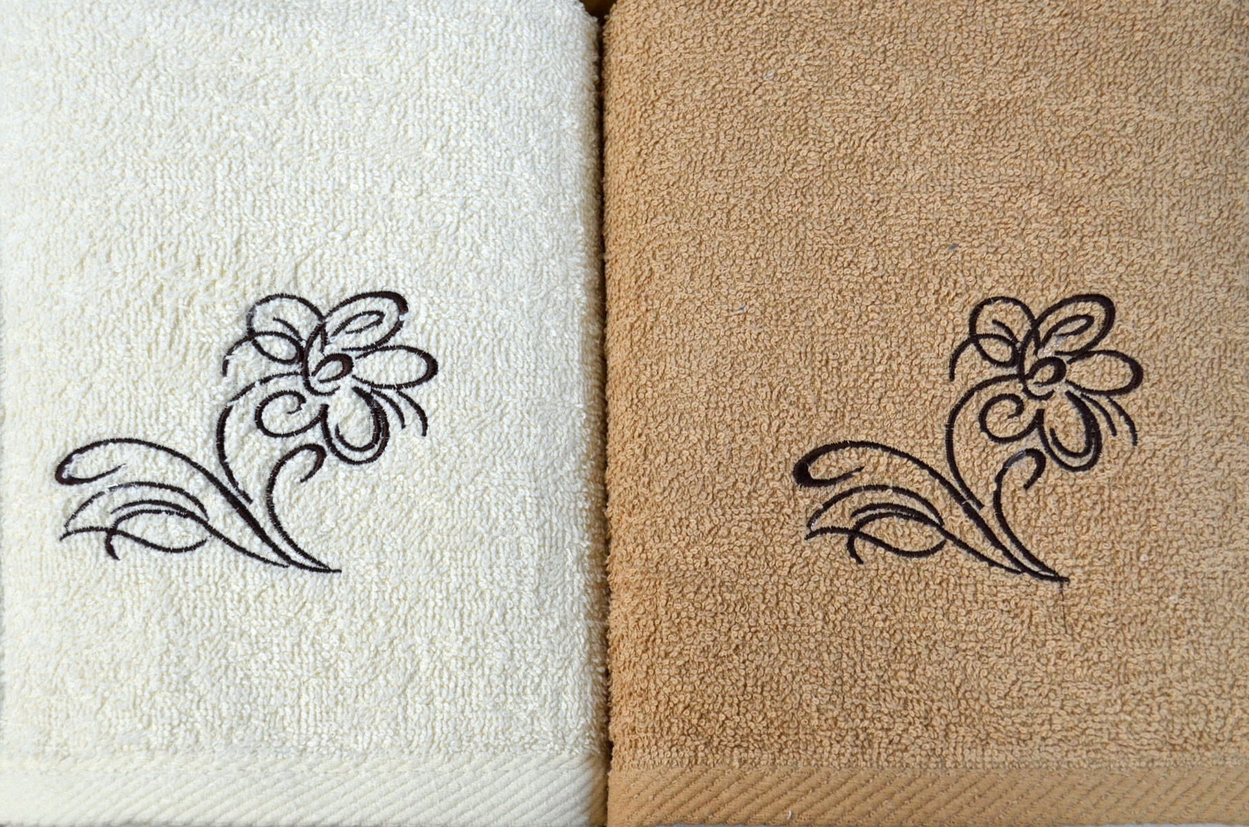 Description Serviette de toilette à broder en coton, éponge (2 pièces) Beige et Ecru