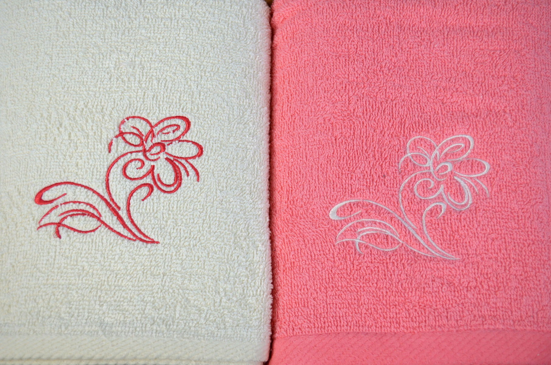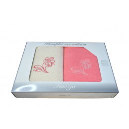 Description Serviette de toilette à broder en coton, éponge (2 pièces) Rose et Ecru