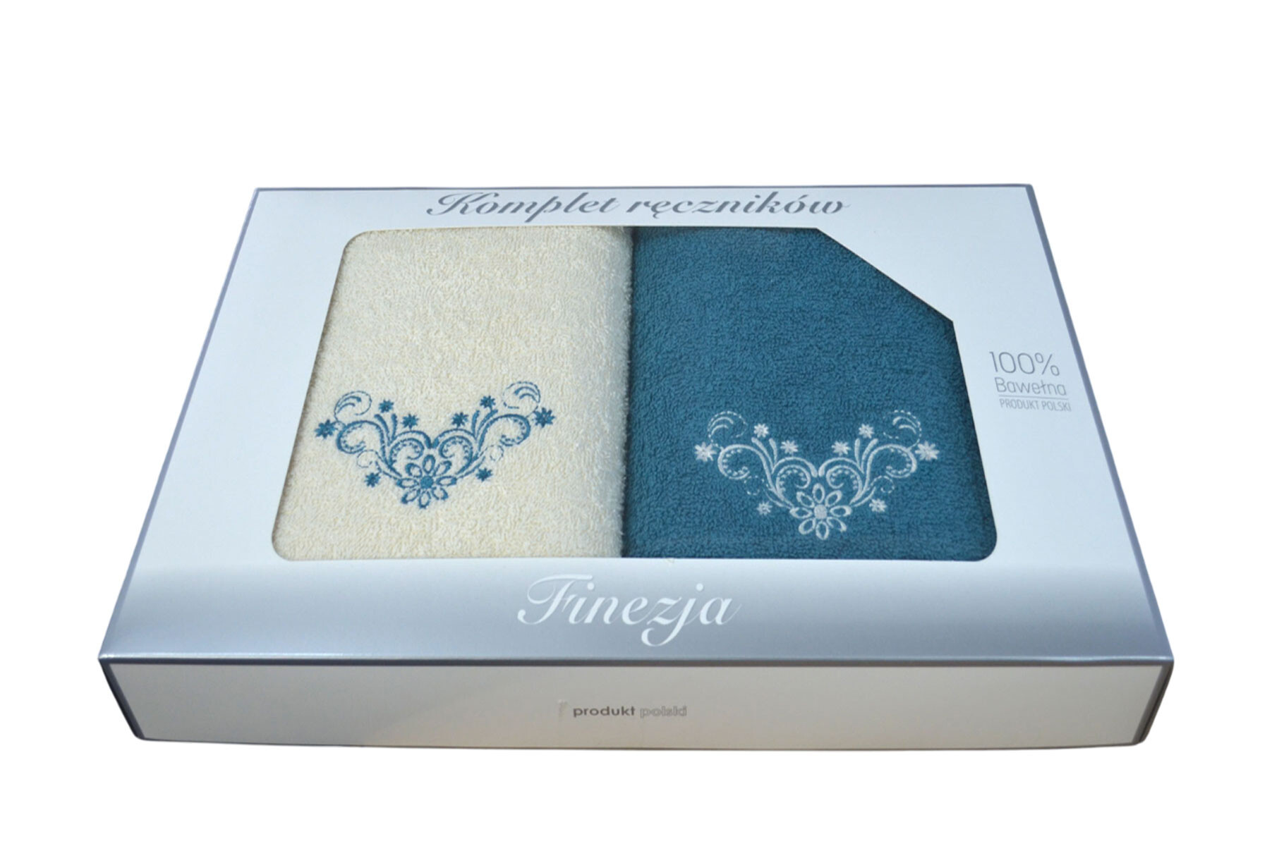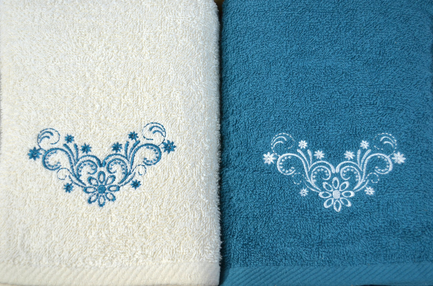 Description Serviette de toilette à broder en coton, éponge (2 pièces) Turquoise et Ecru