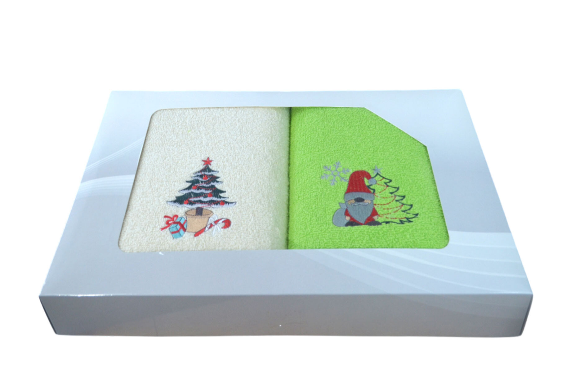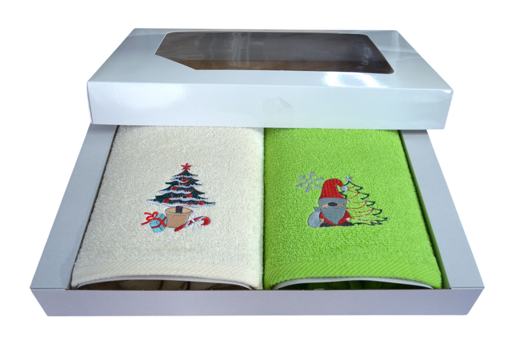 Description Serviette de toilette à broder en coton, éponge (2 pièces) Verte et Ecru