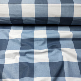 Tissu coton au métre couleur blanche carreaux bleu 8 cm