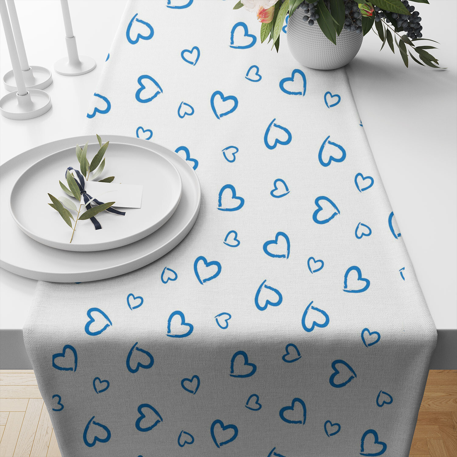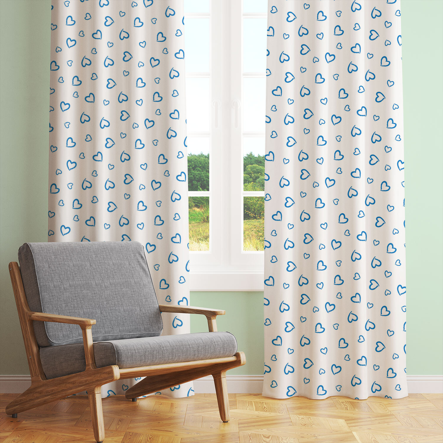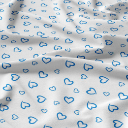 Tissu coton au métre couleur blanche, coeurs Bleu