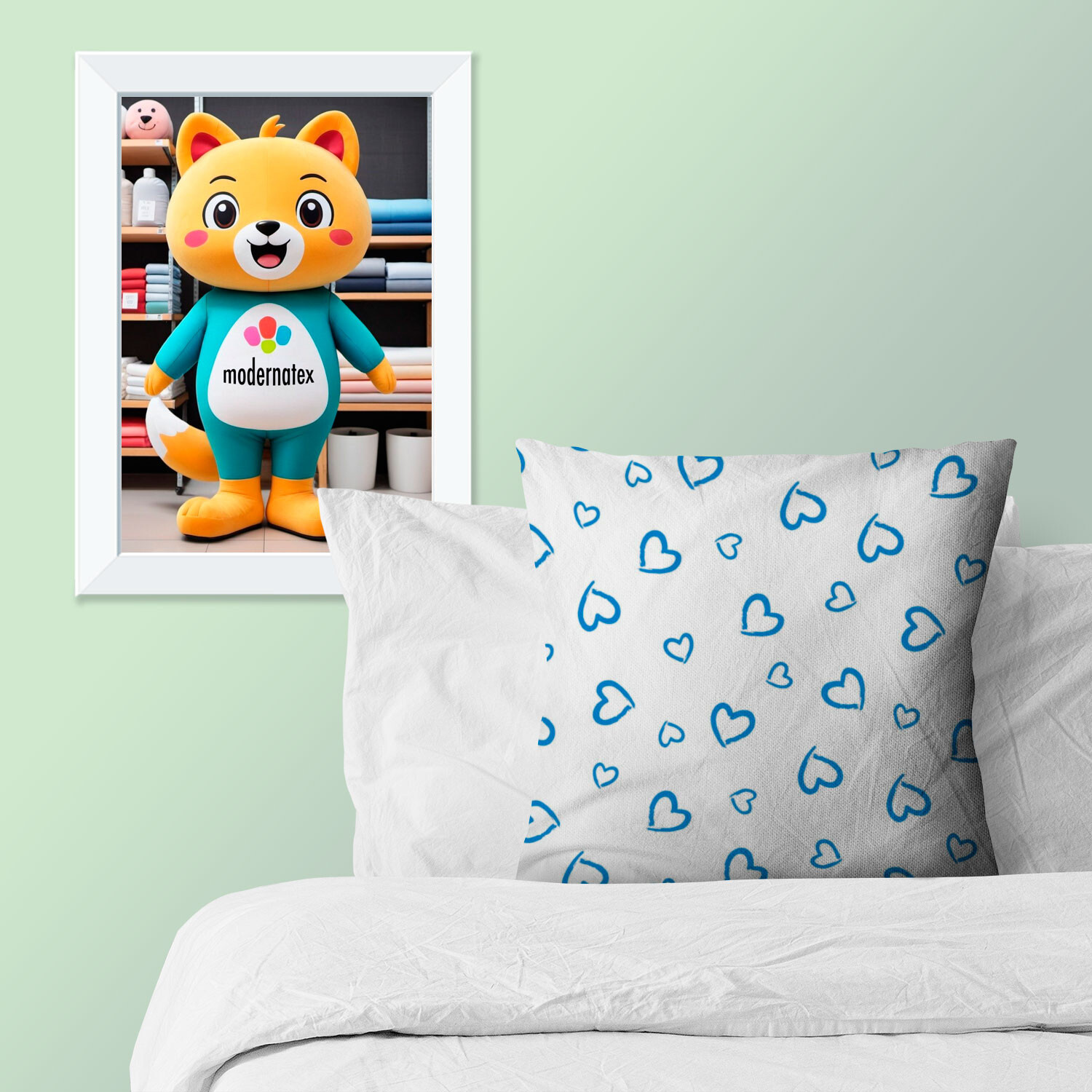 Description Tissu coton au métre couleur blanche, coeurs Bleu