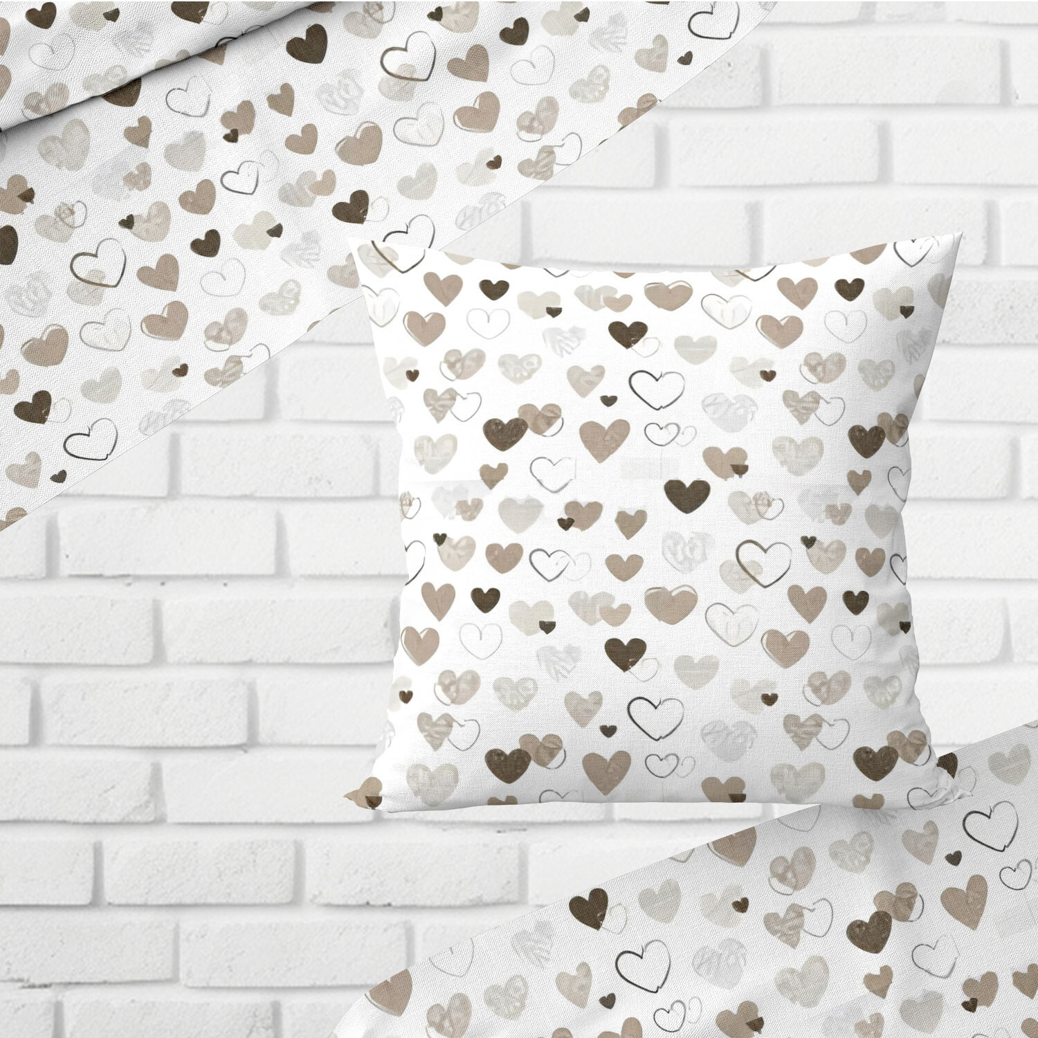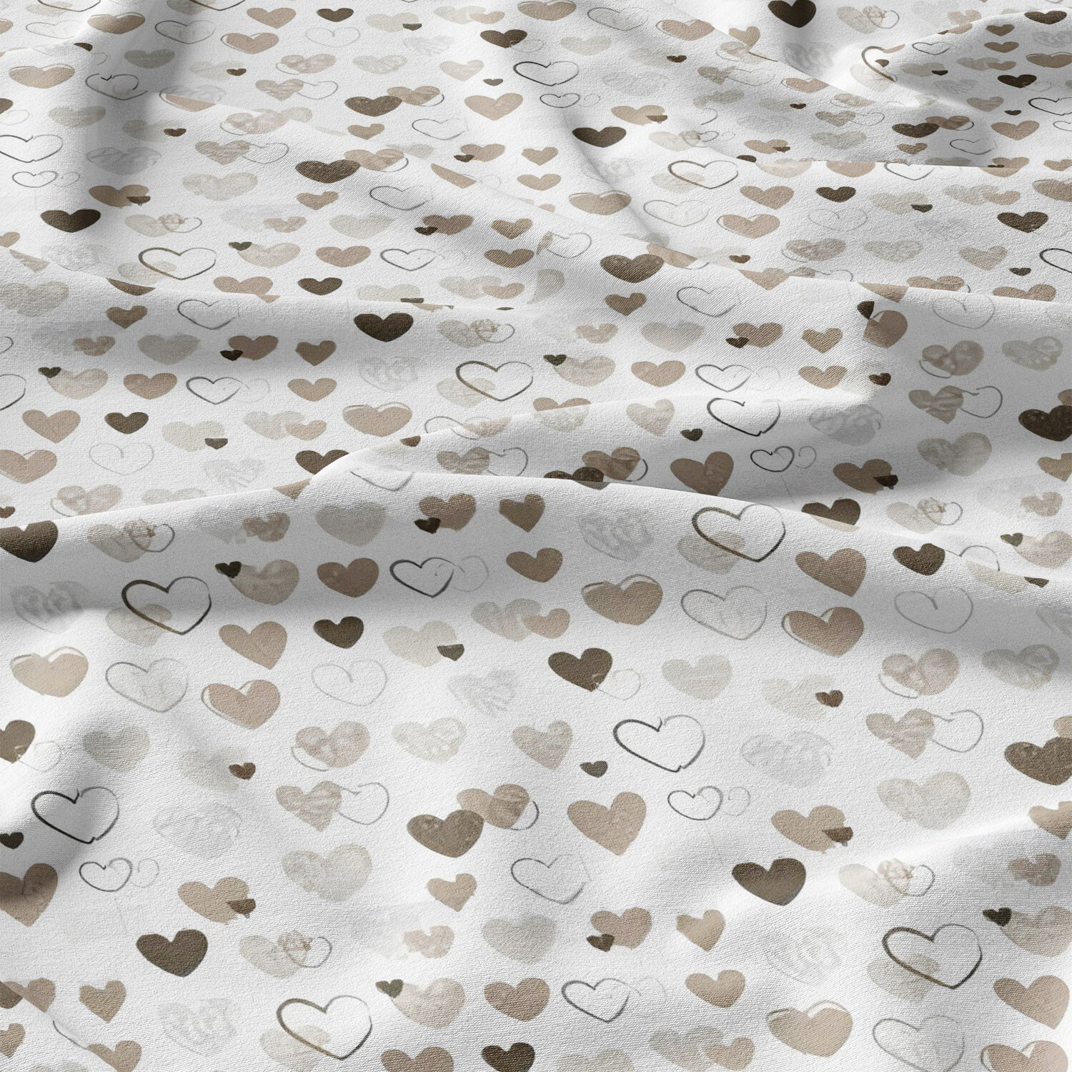 Tissu coton au métre couleur blanche coeurs maron 485