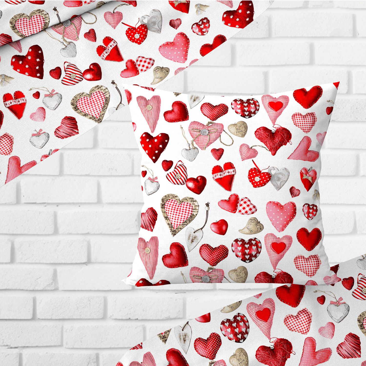Description Tissu coton au métre couleur Blanche, coeurs Multicolore