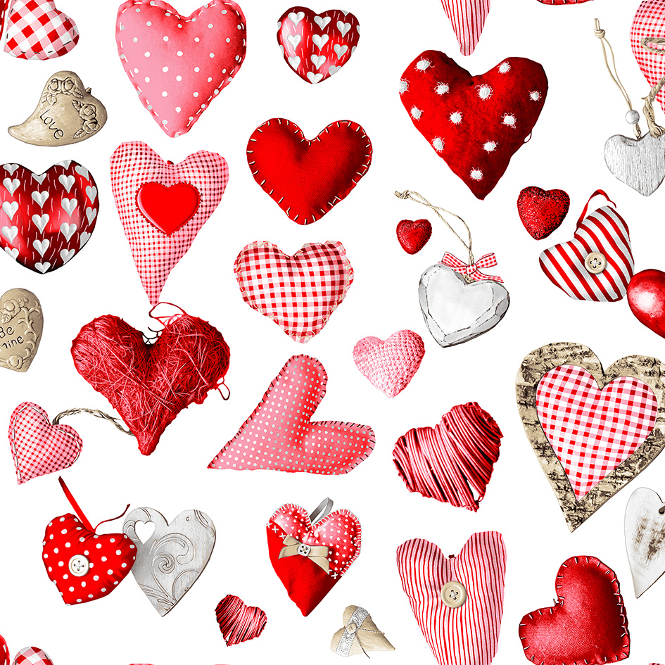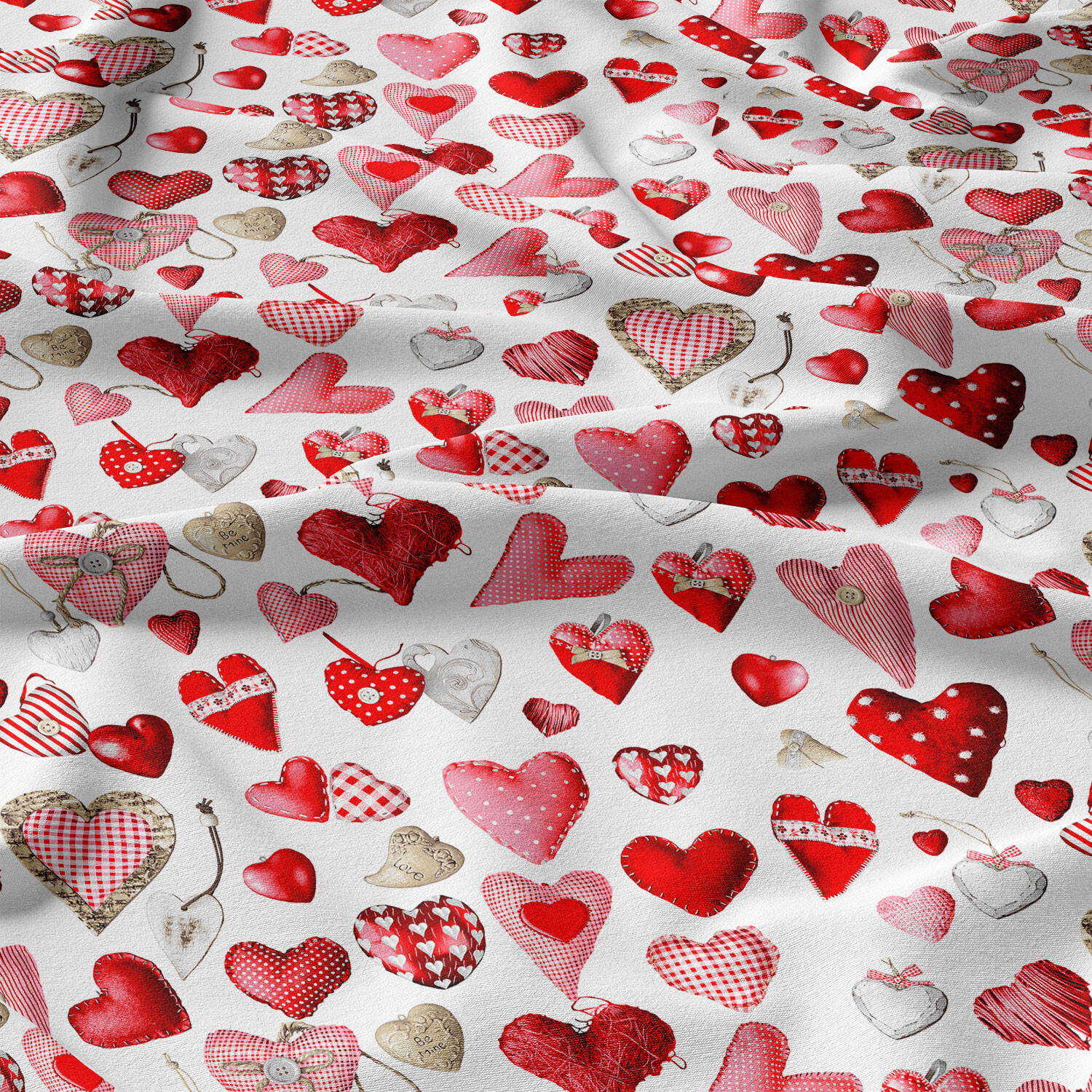 Tissu coton au métre couleur Blanche, coeurs Multicolore